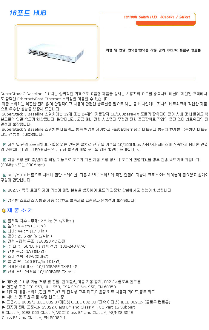 [SL] 10/100M Switch HUB 3C16471 / 24Port (°¡°Ý¹®ÀÇ)