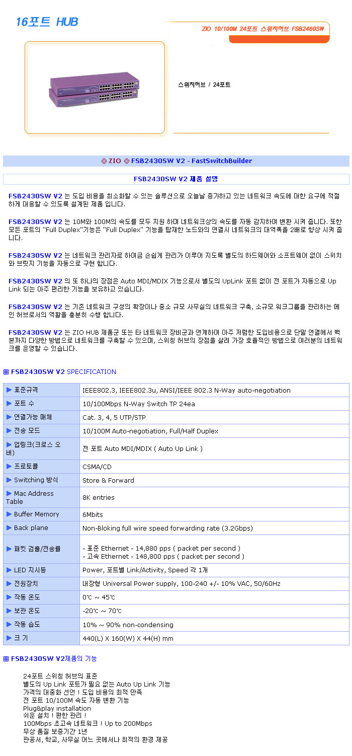 [SL] ZIO 10/100M 24Æ÷Æ® ½ºÀ§Ä¡Çãºê FSB2460SW