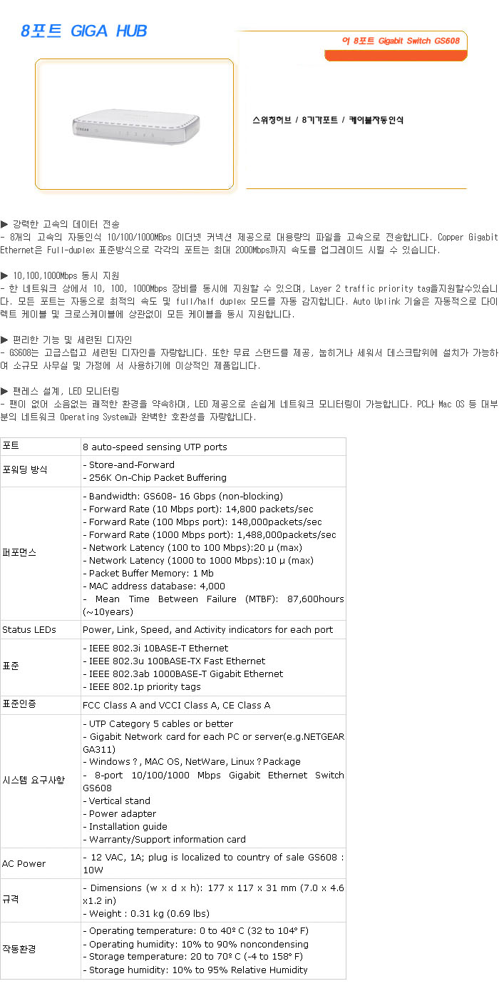 [SL] ³Ý±â¾î 8Æ÷Æ® Gigabit Switch GS608