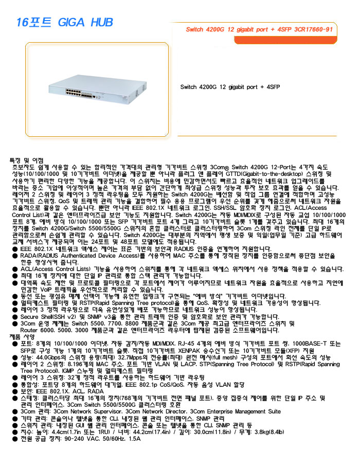 [SL] Switch 4200G 12 gigabit port + 4SFP 3CR17660-91 (°¡°Ý¹®ÀÇ)
