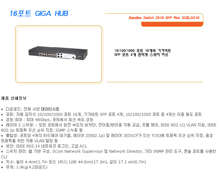 [SL] Baseline Switch 2916-SFP Plus 3CBLSG16 (°¡°Ý¹®ÀÇ)