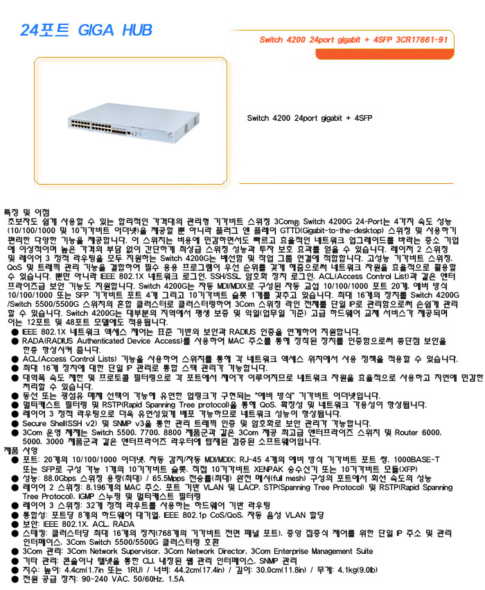 [SL] Switch 4200 24port gigabit + 4SFP 3CR17661-91 (°¡°Ý¹®ÀÇ)