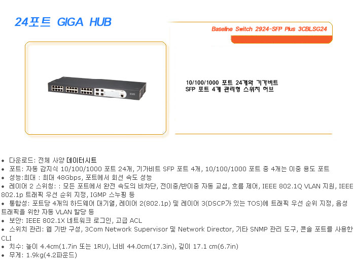 [SL] Baseline Switch 2924-SFP Plus 3CBLSG24 (°¡°Ý¹®ÀÇ)