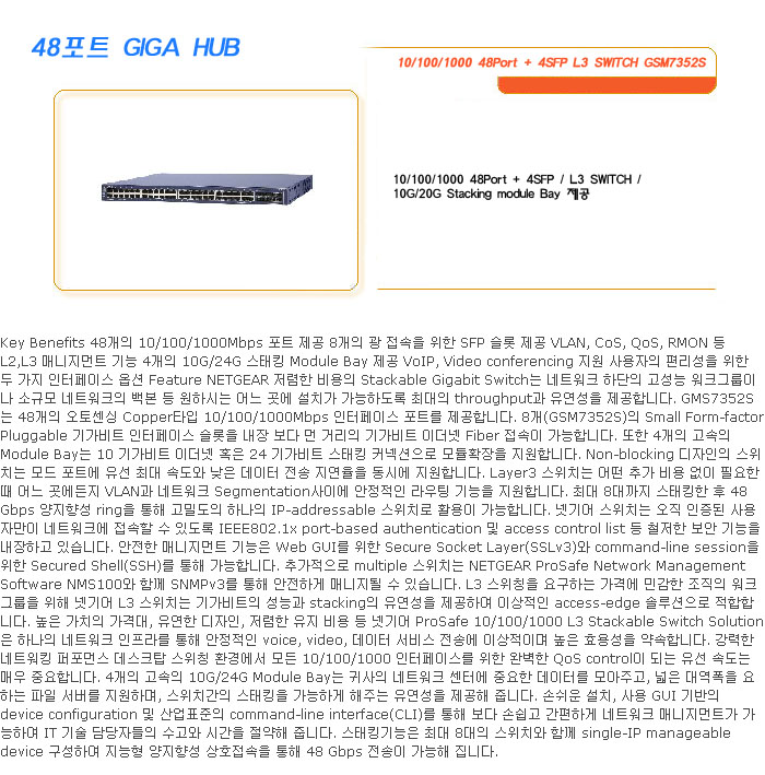 [SL] 10/100/1000 48Port + 4SFP L3 SWITCH GSM7352S