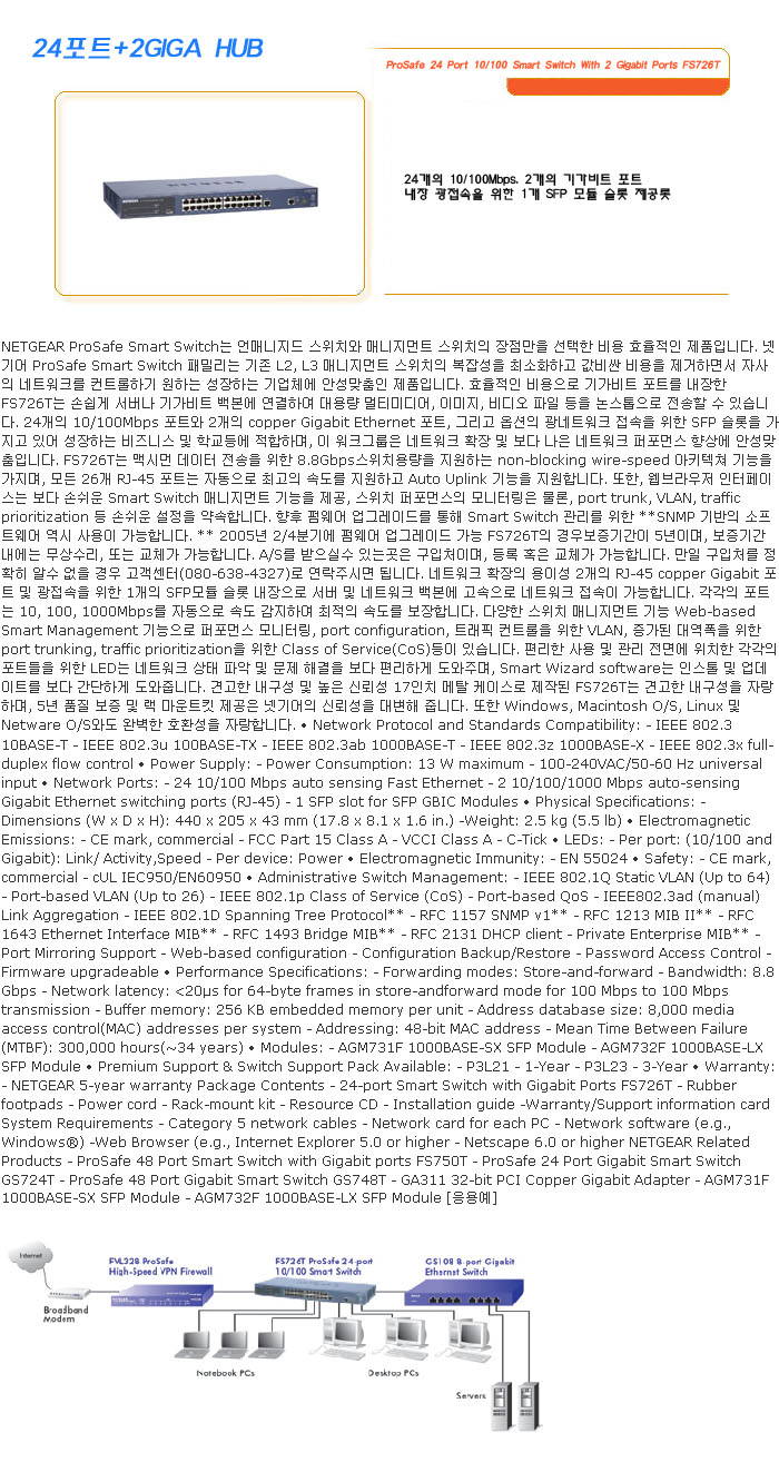 [SL] ProSafe 24 Port 10/100 Smart Switch With 2 Gigabit Ports FS726T