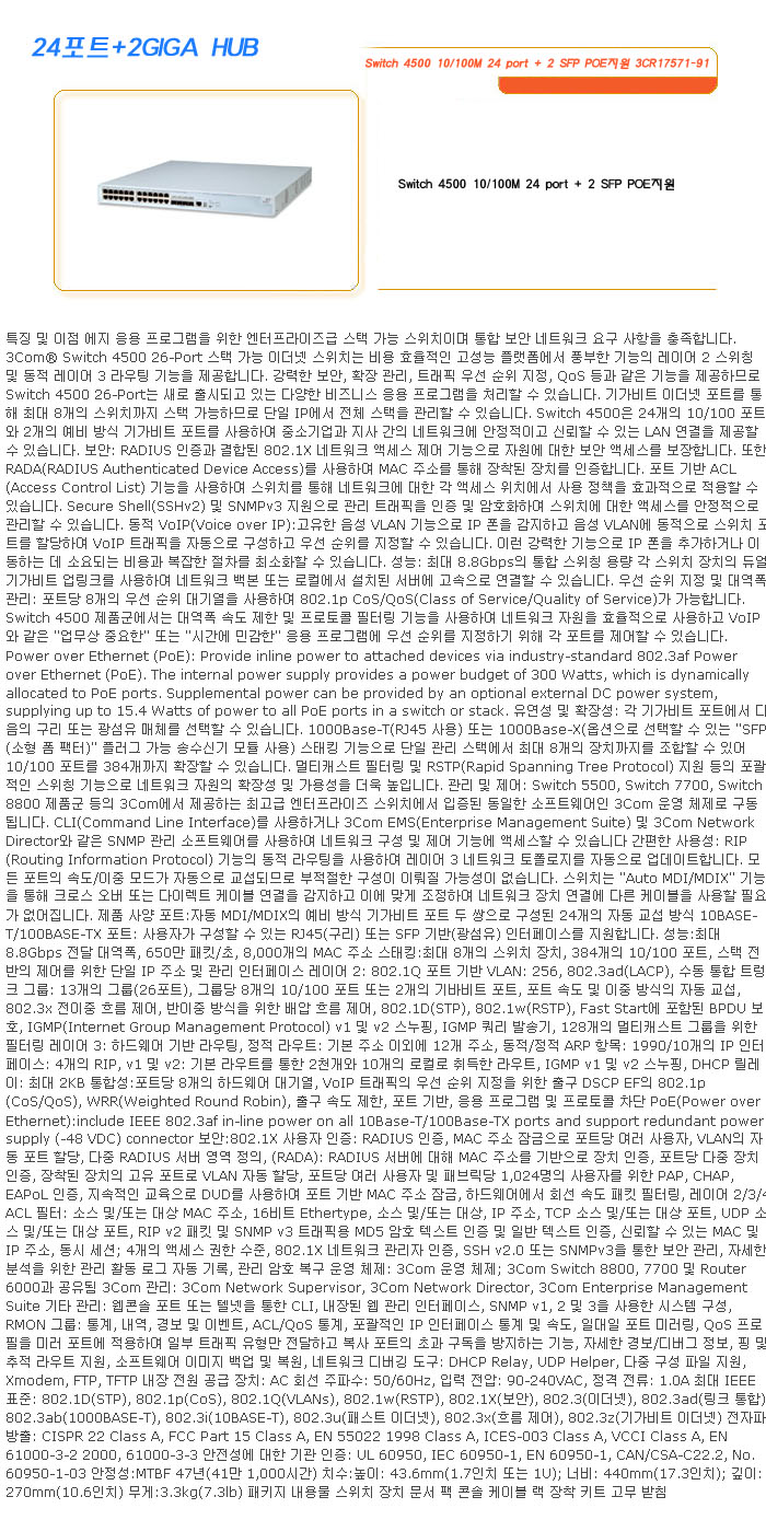 [SL] Switch 4500 10/100M 24 port + 2 SFP POEÁö¿ø 3CR17571-91 (°¡°Ý¹®ÀÇ)