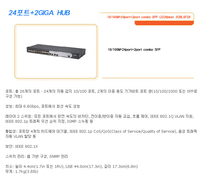 [SL] 10/100M*24port+2port combo SFP (2226plus) 3CBLSF26 (°¡°Ý¹®ÀÇ)