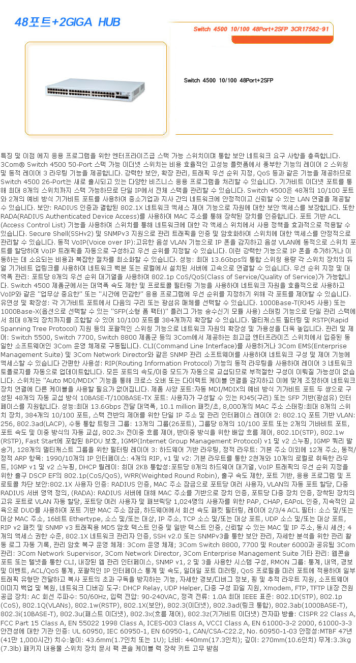 [SL] Switch 4500 10/100 48Port+2SFP 3CR17562-91 (°¡°Ý¹®ÀÇ)