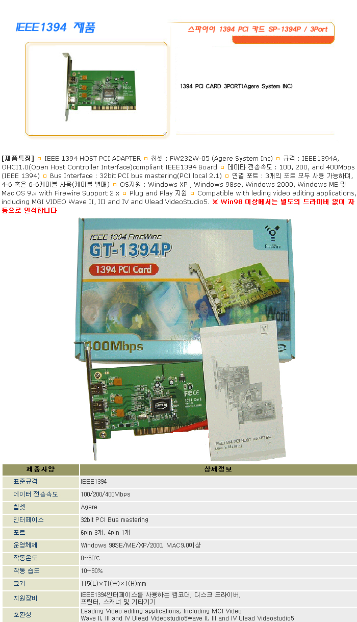[SL] ½ºÆÄÀ̾î 1394 PCI Ä«µå SP-1394P / 3Port