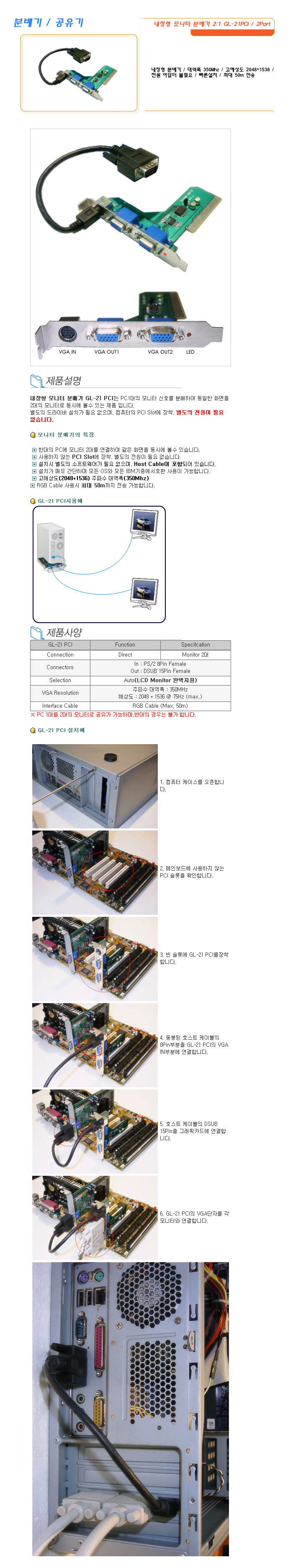 [SL] ³»ÀåÇü ¸ð´ÏÅÍ ºÐ¹è±â 2:1 GL-21PCI / 2Port
