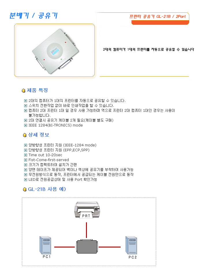 [SL] ÇÁ¸°ÅÍ °øÀ¯±â GL-21B / 2Port