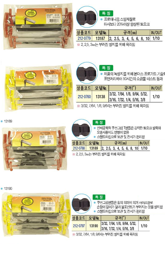 [º»´õ½º]T-º¼·»Ä¡ ¼¼Æ®(BALL END HEX T-KEY SET)