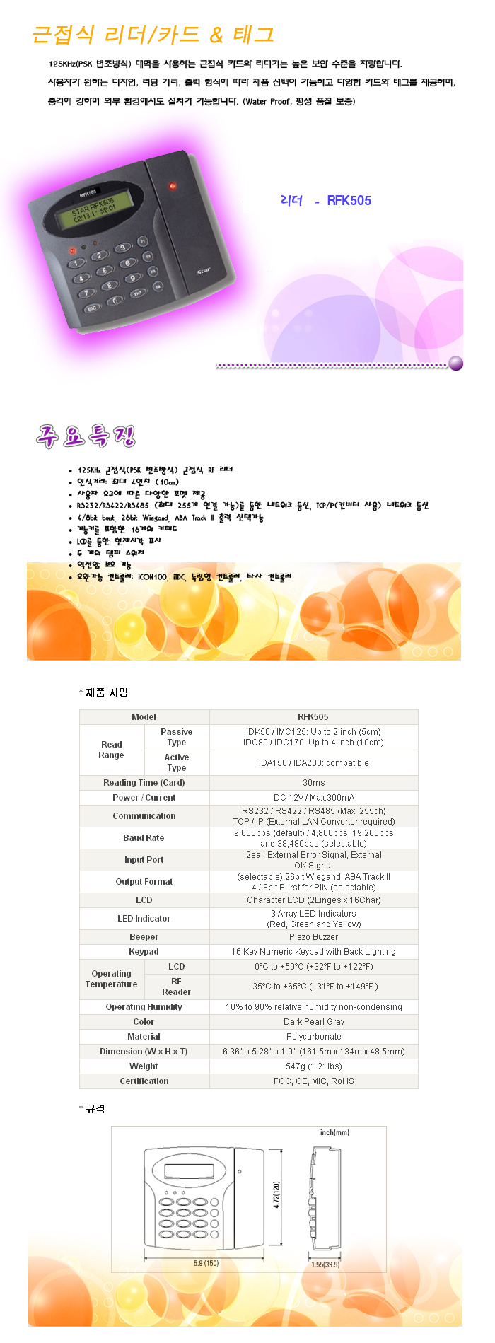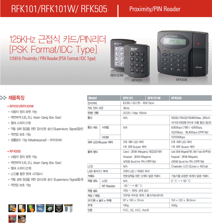 [ID] RFK505(±ÙÁ¢½Ä RF Ä«µå ¸®´õ)(PIN & Proximity Card Reader)