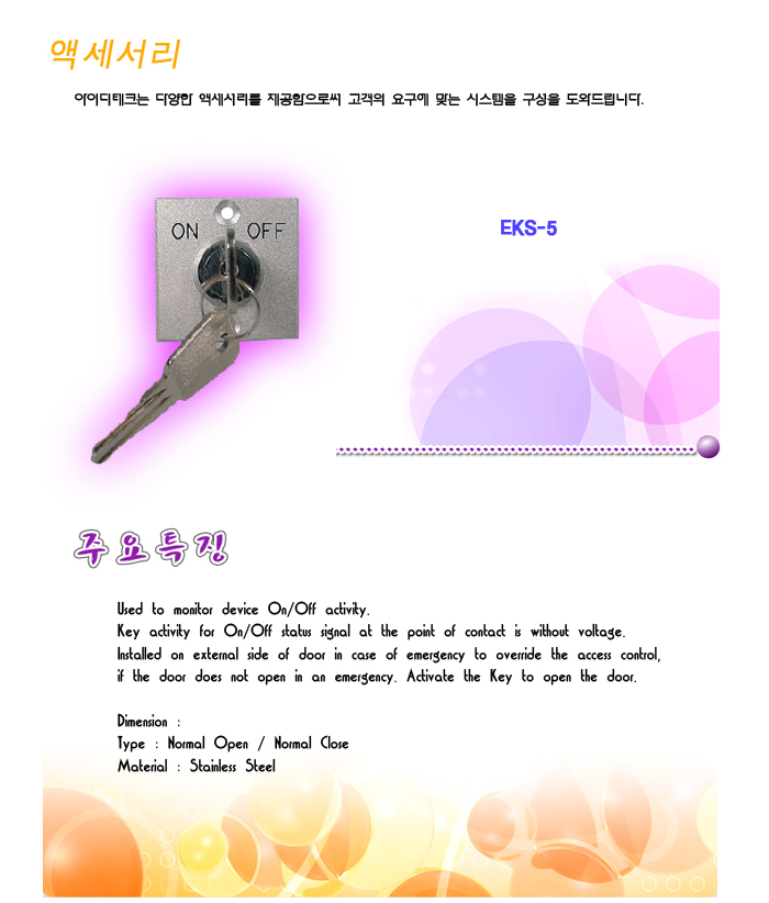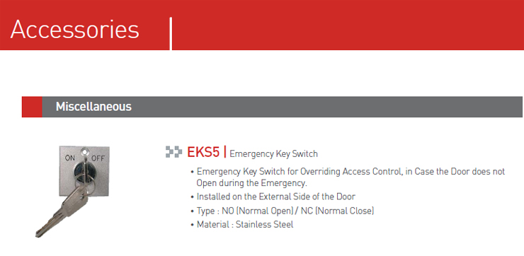 • ±ä±Þ»óȲ ½Ã ÃâÀÔ¹®ÀÌ ¿¸®Áö ¾ÊÀ» °æ¿ì¸¦ ´ëºñÇØ ¼³Ä¡ÇÏ´Â ºñ»ó ½ºÀ§Ä¡ • ºñ»ó½Ã ¼öµ¿À¸·Î ÀÛµ¿½Ãų ¼ö ÀÖµµ·Ï ÃâÀÔ¹® ¿ÜºÎ¿¡ ¼³Ä¡ • ÇüÅ : NO (Normal Open) / NC (Normal Close) • ÀçÁú : ½ºÅ×Àθ®½º ½ºÆ¿ |