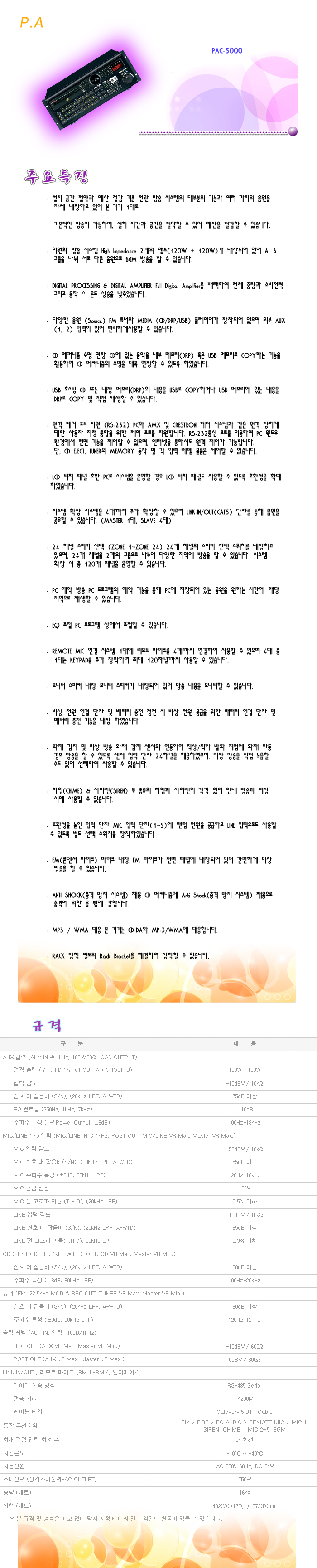 [ÀÎÅÍ¿¥] P.A PAC-5000