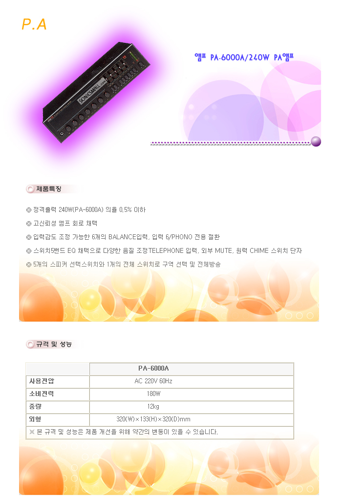 [ÀÎÅÍ¿¥] P.A ¾ÚÇÁ PA-6000A/240W PA¾ÚÇÁ