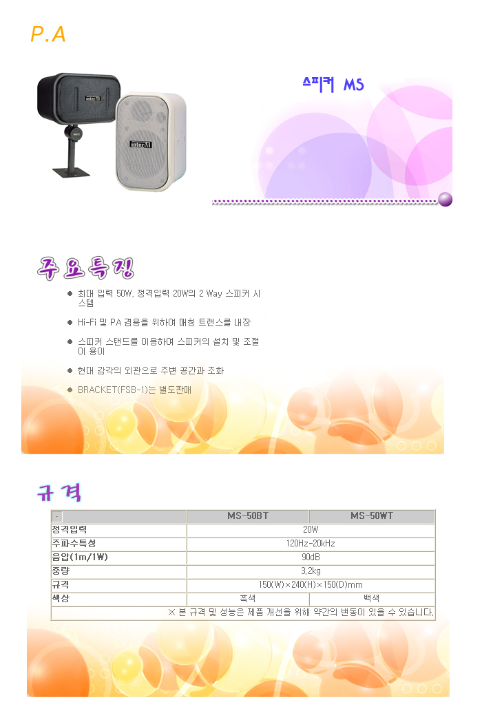 [ÀÎÅÍ¿¥] P.A ½ºÇÇÄ¿ MS-50BT/WT:´ÜÁ¾!!