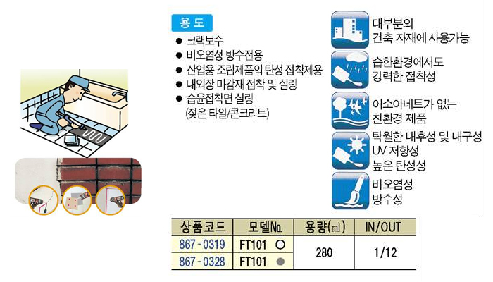 [·°Å°] °ÇÃà¿ëÁ¢ÂøÁ¦/Å©·¢º¸¼öÁ¦(CONSTRUCTION ADHESIVE)(¹é»ö FT101)(¹Ú½º 12°³ ´ÜÀ§ ÆÇ¸Å):´ÜÁ¾!!