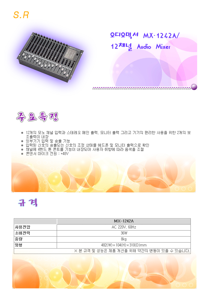 [ÀÎÅÍ¿¥] S.R ¿Àµð¿À¹Í¼­ MX-1242A/12ä³Î Audio Mixer