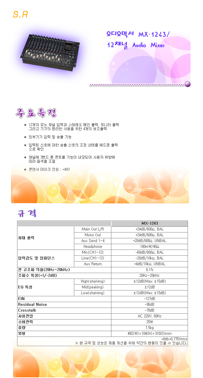 [ÀÎÅÍ¿¥] S.R ¿Àµð¿À¹Í¼­ MX-1243/12ä³Î Audio Mixer