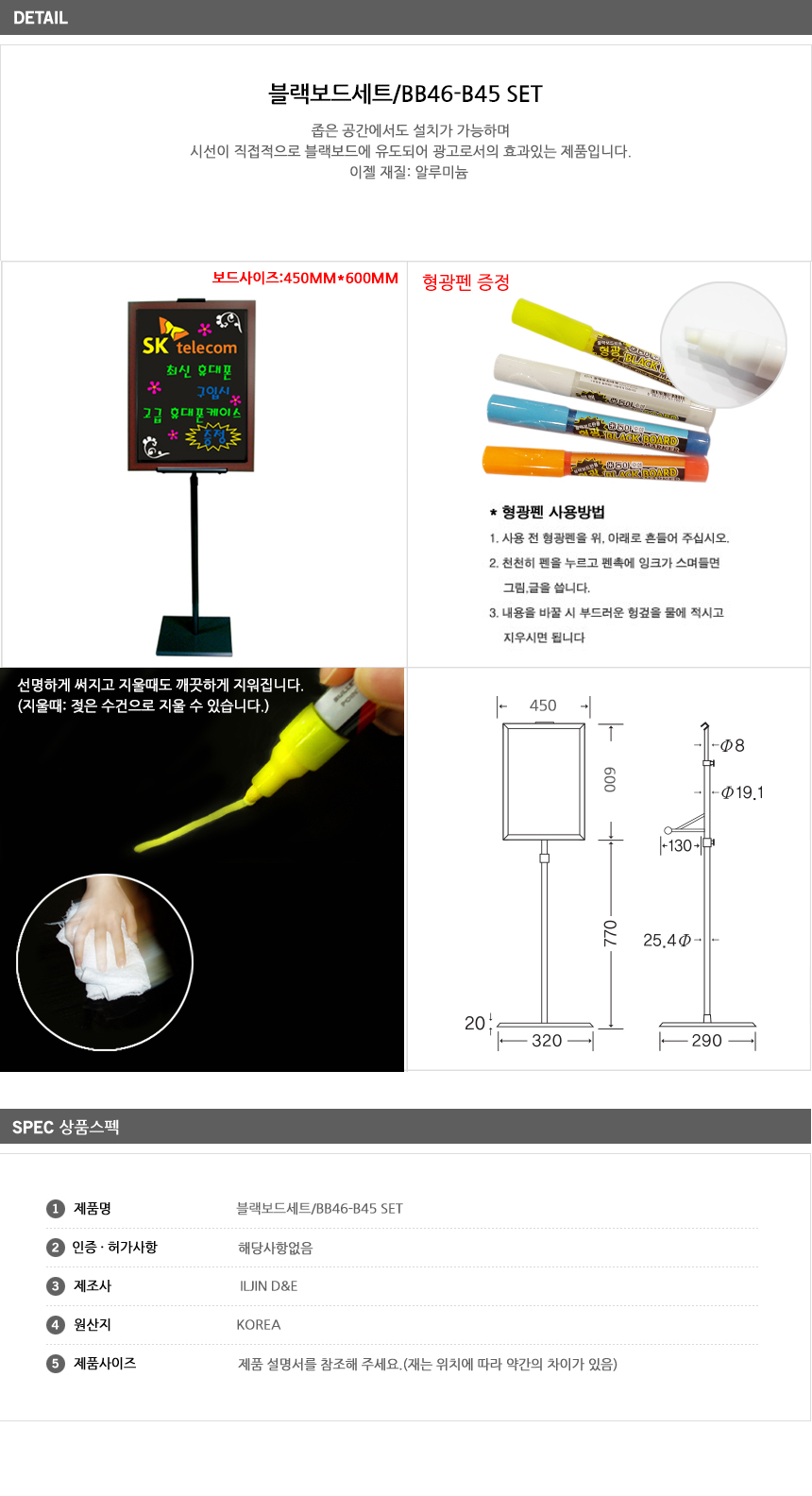 [ÀÏÁø] ºí·¢º¸µå¼¼Æ®(BB46-B45, ºñÁ¶¸í, ¾È³»/±¤°í Ç¥½Ã °Ô½ÃÆÇ, ¾Ë·ç¹Ì´½ ÀÌÁ©, º¸µå:450x600mm)