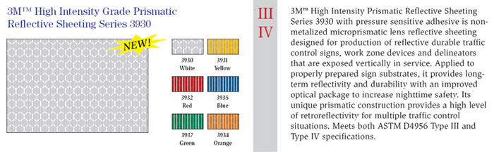 3M¢â High Intensity Grade Prismatic Sheeting Series 3930