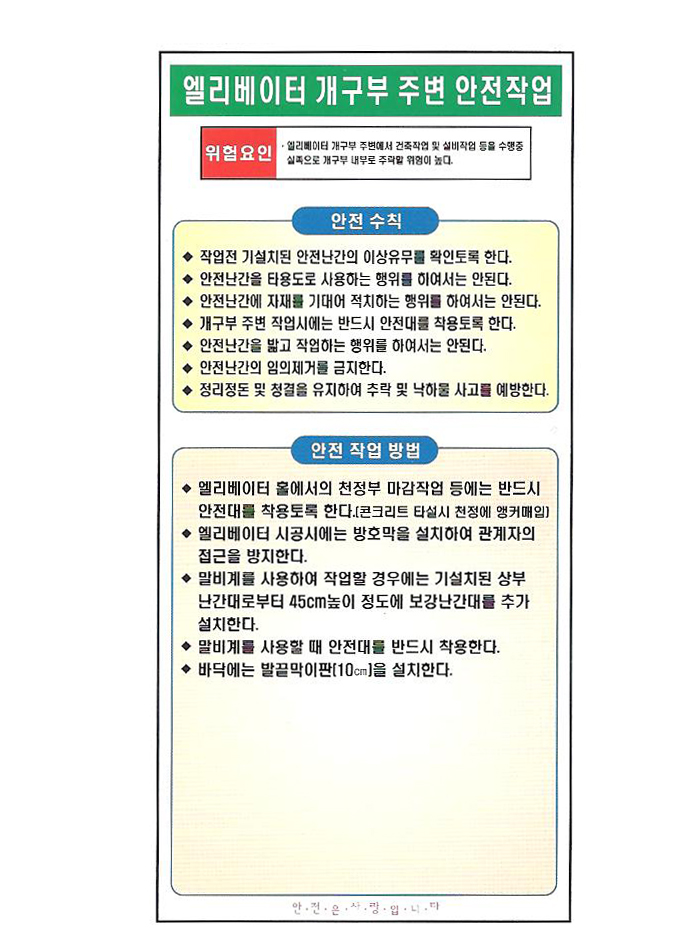 [´ë¼º]°øÁ¤º° ¾ÈÀüÀÛ¾÷Ç¥ÁöÆÇ/°øÁ¤º° ¾ÈÀüÀÛ¾÷¼öÄ¢(¿¤¸®º£ÀÌÅÍ °³ºÎºÎ ÁÖº¯ ¾ÈÀüÀÛ¾÷)¾ÈÀü 22040