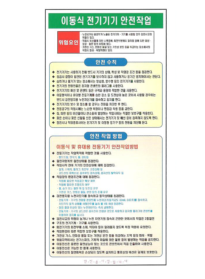 [´ë¼º]°øÁ¤º° ¾ÈÀüÀÛ¾÷Ç¥ÁöÆÇ/°øÁ¤º° ¾ÈÀüÀÛ¾÷¼öÄ¢(À̵¿½Ä Àü±â±â±â ¾ÈÀüÀÛ¾÷)¾ÈÀü 22069