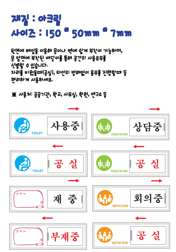 [¾ÆÆ®]¿©´ÝÀÌÇ¥ÁöÆÇ(150mm X 50mm)»ç¿ëÁß/°ø½Ç 7302