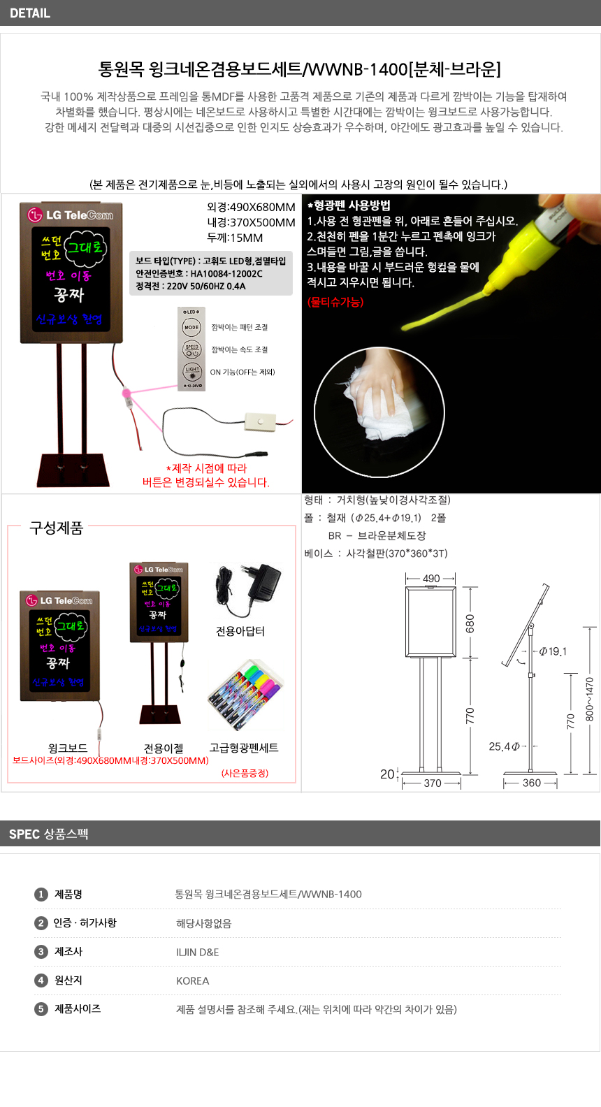 [ÀÏÁø] Åë¿ø¸ñ À®Å© ³×¿Â°â¿ëº¸µå ¼¼Æ®(WWNB-1400 ºê¶ó¿î, 490x680mm, Á¡¸ê LED ³×¿Âº¸µå, »óǰ¾È³»/±¤°í, ÀüÀÚ°Ô½ÃÆÇ, Çü±¤Ææ Æ÷ÇÔ)