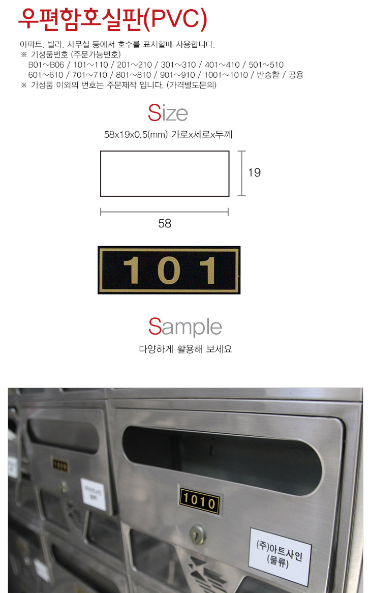 [AT] ¿ìÆíÇÔÈ£½ÇÆÇ(PVC, 58x19mm 0.5T, ¾ÆÆÄÆ®/ºô¶ó/»ç¹«½Ç ¿ìÆíÇÔ¹øÈ£)