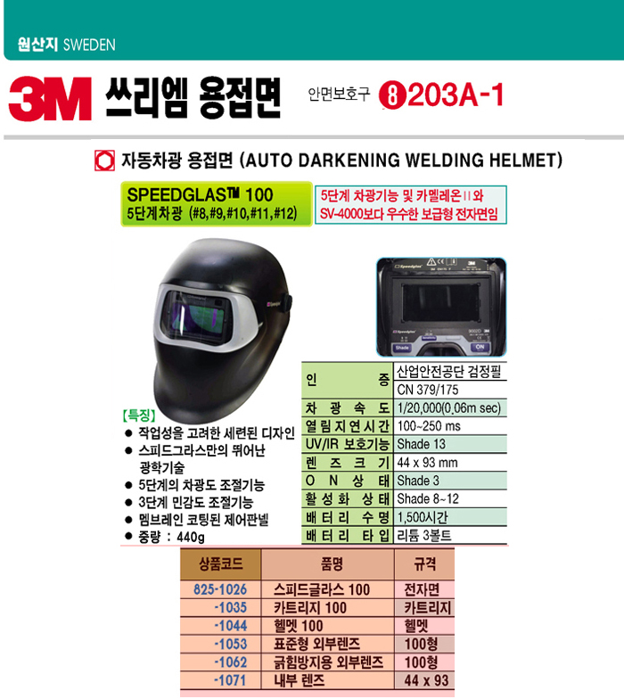[3M] ÀÚµ¿Â÷±¤ ¿ëÁ¢¸é īƮ¸®Áö(SPEEDGLAS 100 īƮ¸®Áö, Çï¸äÁ¦¿Ü)(AUTO DARKENING WELDING HELMET)(Àç°í»óȲ È®Àοä¸Á)