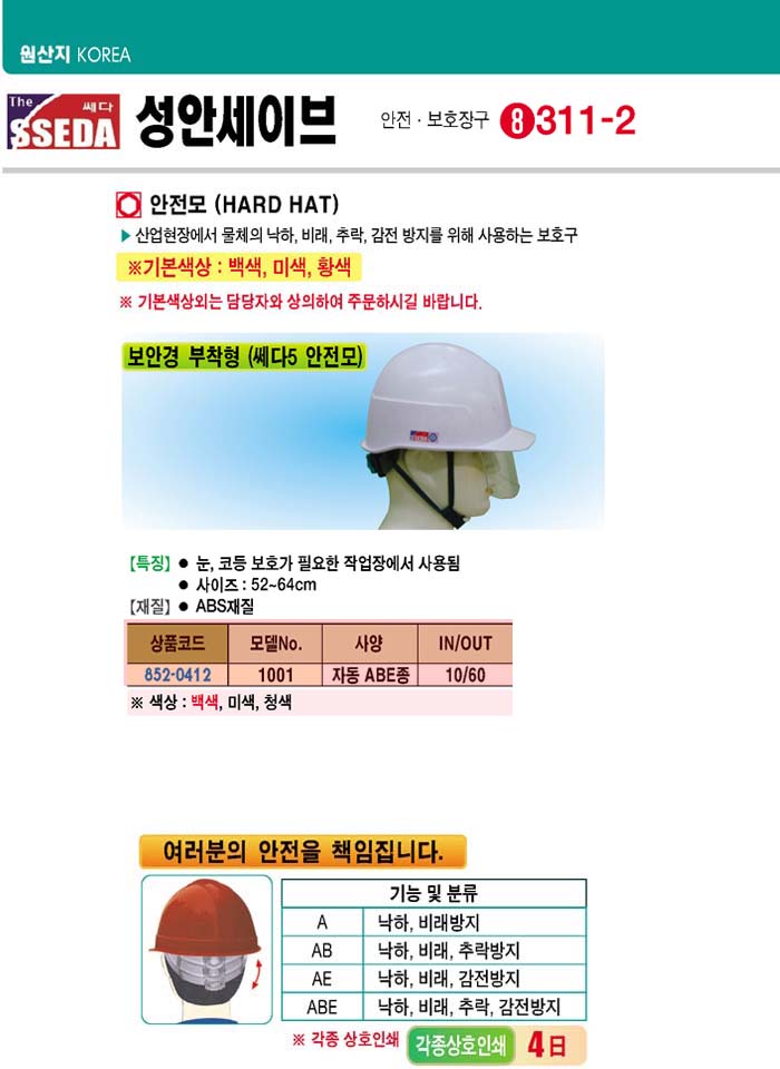 [¼º¾È¼¼À̺ê] º¸¾È°æºÎÂøÇü ÀÚµ¿ ¾ÈÀü¸ð(Á¦1001È£, ¼¼´Ù5 ¾ÈÀü¸ð)(Hard Hat)(SSEDA)(10°³¼¼Æ®)