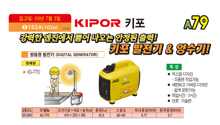 [KIPOR] IG-770 ¹æÀ½Çü µðÁ© ¹ßÀü±â (DIESEL GENERATOR)