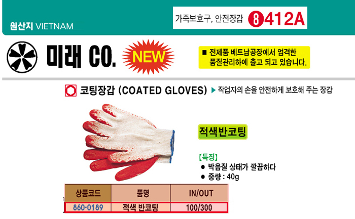 [¹Ì·¡] ÄÚÆÃÀå°©(Àû»ö¹ÝÄÚÆÃ)(COATED GLOVES)(200¼¼Æ® ¹­À½)
