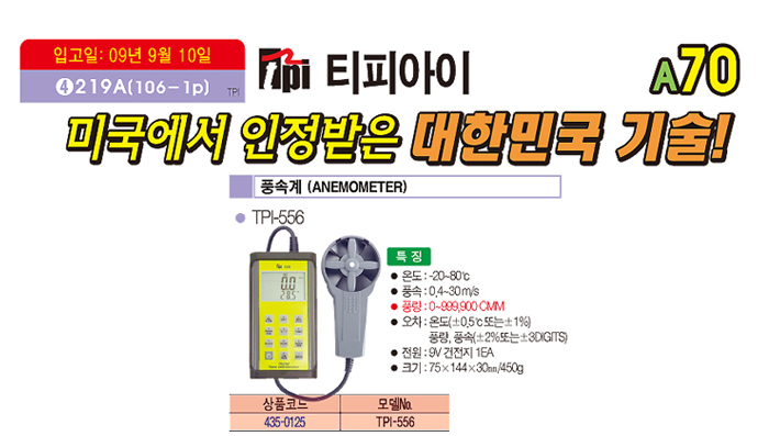 [ƼÇǾÆÀÌ] dz¼Ó°è (ANEMOMETER) TPI-556:Á¦Ç°´ÜÁ¾=>´ëü»óǰ:[ƼÇǾÆÀÌ] dz¼Ó°è[DC580(dz·®,dz¼Ó)]À¸·Î ÃâÇÏ ¿¹Á¤!