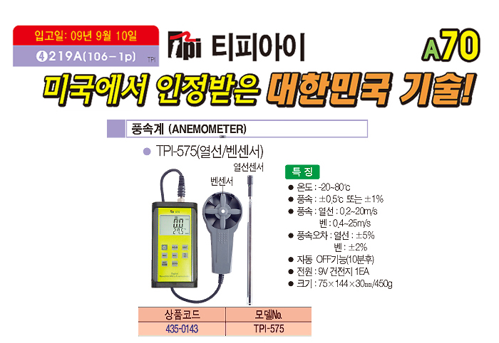 [ƼÇǾÆÀÌ] dz¼Ó°è (ANEMOMETER) TPI-575(¿­¼±/º¥¼¾¼­)