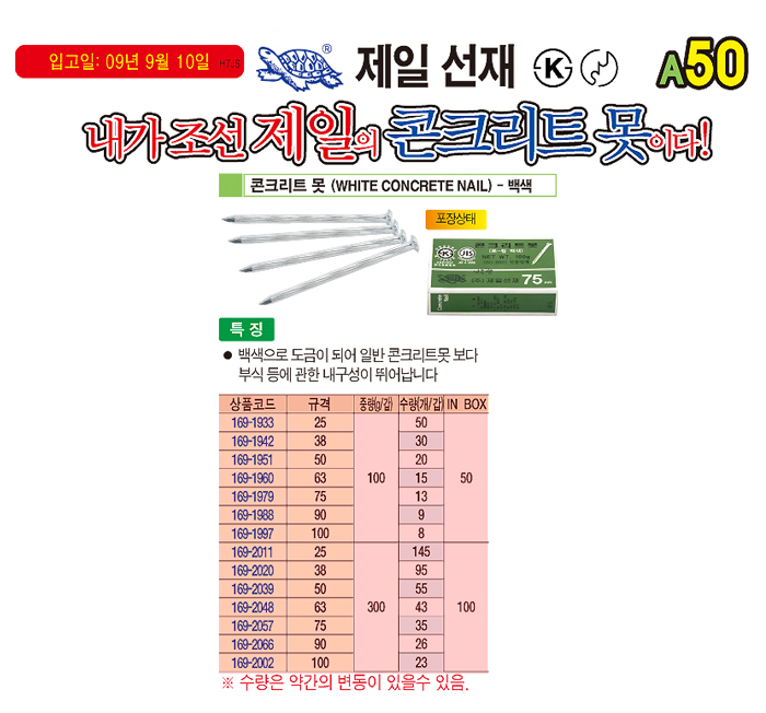 [Á¦Àϼ±Á¦] ÄÜÅ©¸®Æ® ¸ø (WHITE CONCRETE NAIL) - ¹é»ö (25 ~ 100)