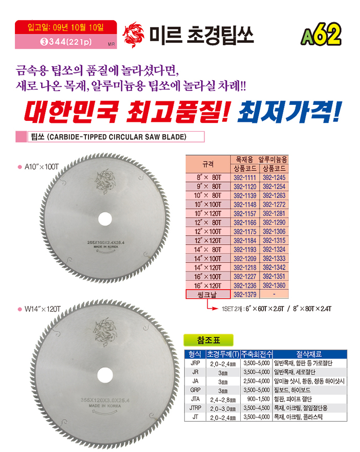 [¹Ì¸£] ÆÁ½î (CARBIDE-TIPPED CIRCULAR SAW BLADE) 8¢© ¡¿ 80T ~ 10¢© ¡¿ 120T