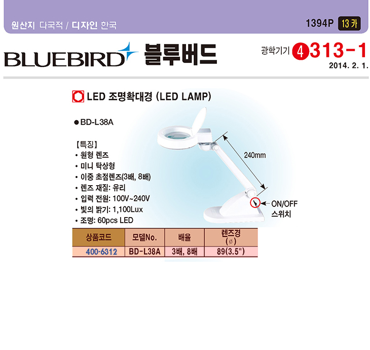 [BLUEBIRD/ºí·ç¹öµå]LED Á¶¸íÈ®´ë°æ(BD-L38A,3¹è/8¹èÈ®´ë,½ºÅĵåÇü)(LED Illumination Magnifier)(ÁÖ¹®Àü Àç°íÈ®ÀÎ)