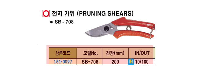 [SHINSUNG] ÀüÁö°¡À§ (PRUNING SHEARS) SB-708(10°³¼¼Æ®)