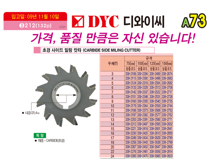 [µð¿ÍÀ̾¾] ÃÊ°æ »çÀÌµå ¹Ð¸µ ıŸ (CARBIDE SIDE MILING CUTTER) 3T 75mm ~ 12T 75mm