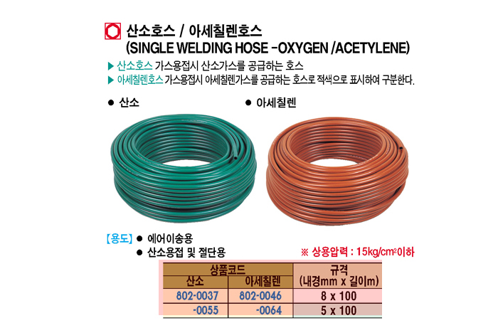 [½Ö¸¶] »ê¼ÒÈ£½º/¾Æ¼¼Ä¥·»È£½º (SINGLE WELDING HOSE - OXYHEN/ACETYLENE))