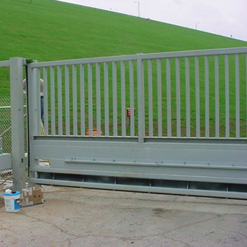 The SC3000 industrial gate doesn't need a track, wheels or roller path across the entrance or drive it protects.  Thus, it adapts well to roads with high crowns, drainage gutters or other conditions that preclude ground tracks.