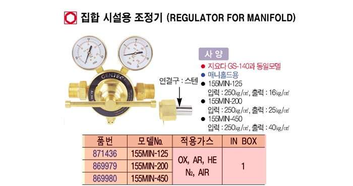 [Á¨ÅØ] ÁýÇÕ ½Ã¼³¿ë Á¶Á¤±â(REGULATOR FOR MANIFOLD)=>Á¦Ç°´ÜÁ¾=>´ëü»óǰ[Áö¿ä´Ù GS-140À¸·Î »ç¿ë °¡´É]