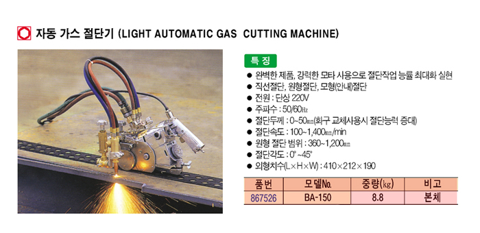 [ºò¿ÀÅä] ÀÚµ¿ °¡½º Àý´Ü±â (LIGHT AUTOMATIC GAS CUTTING MACHINE) BA-150(º»Ã¼):ÀϽÃǰÀý!!