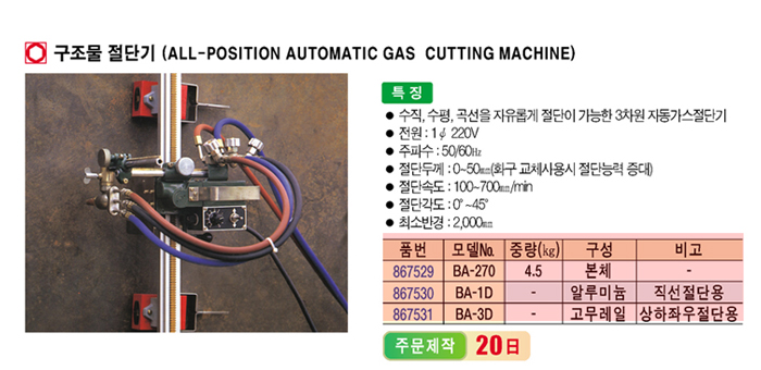 [ºò¿ÀÅä] ±¸Á¶¹° Àý´Ü±â (ALL-POSITION AUTOMATIC GAS CUTTING MACHINE)BA-270:ÀϽÃǰÀý!!