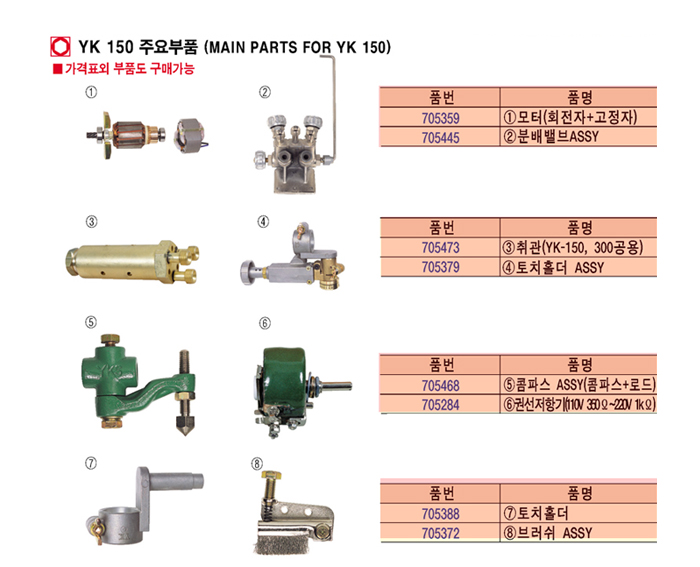 [À¯±¤] YK 150 ÁÖ¿äºÎǰ (MAIN PARTS FOR YK 150)