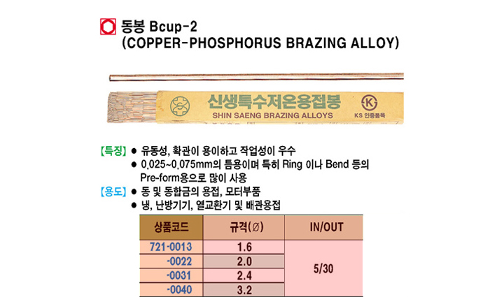 [½Å»ý] µ¿ºÀ Bcup-2 (COPPER-PHOSPHORUS BRAZING ALLOY) (5°³¼¼Æ®)