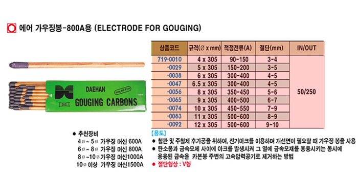 [´ëÇÑÄ«º»] ¿¡¾î °¡¿ì¡ºÀ-800A (ELECTRODE FOR GOUGING)(250°³¼¼Æ®)